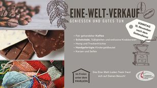 16 Nov Eine-Welt-Verkauf Nach einer Pause ist der Eine-Welt-Verkauf in unserer Gemeinde wieder gestartet und bietet zahlreiche Spezialitäten zum Kauf an. Weiterlesen … Eine-Welt-Verkauf